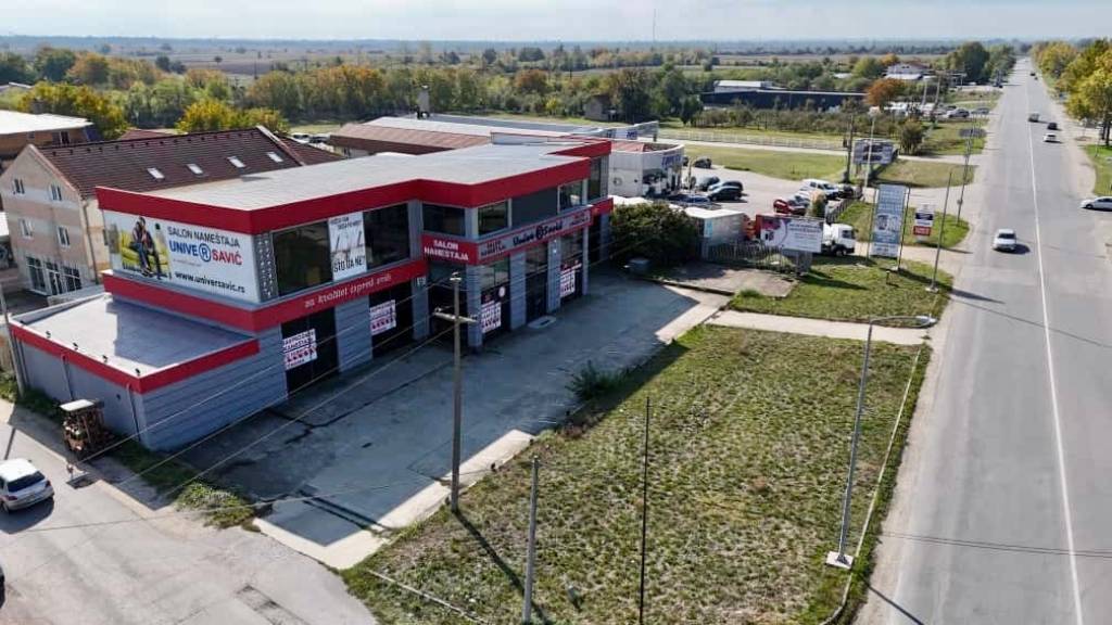 - Prodaja stambeno poslovne zgrade. Poslovni deo objekta čine radionica, tehnički pregled, dve kancelarije, magacini, garaža, kuhinja sa salom za ručavanje i mokri čvor. Sprat objekta cine 3 stana neto površine 117 m².